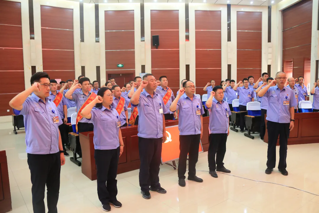 在公司黨委書記、董事長黃偉東帶領(lǐng)下,與會黨員面向黨旗肅立,新黨員進行入黨宣誓,全體黨員重溫入黨誓詞。