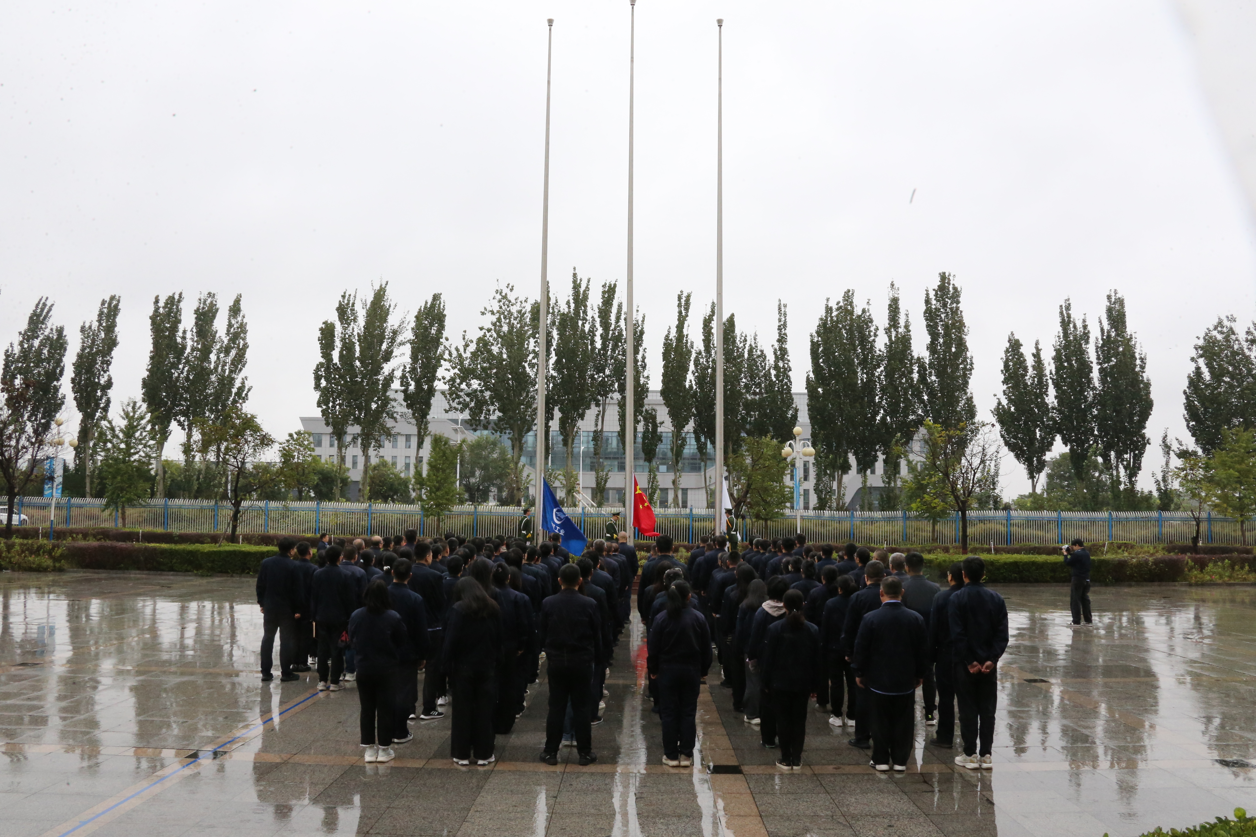 上午9時整,莊嚴的升旗儀式在細密的秋雨中舉行。公司干部職工著裝整齊,精神飽滿,迎著風(fēng)雨列隊在升旗儀式現(xiàn)場。在雄壯威武的國歌和司歌聲中,國旗和航空工業(yè)司旗穿透雨簾,冉冉升起,大家面向五星紅旗和航空工業(yè)司旗行注目禮。